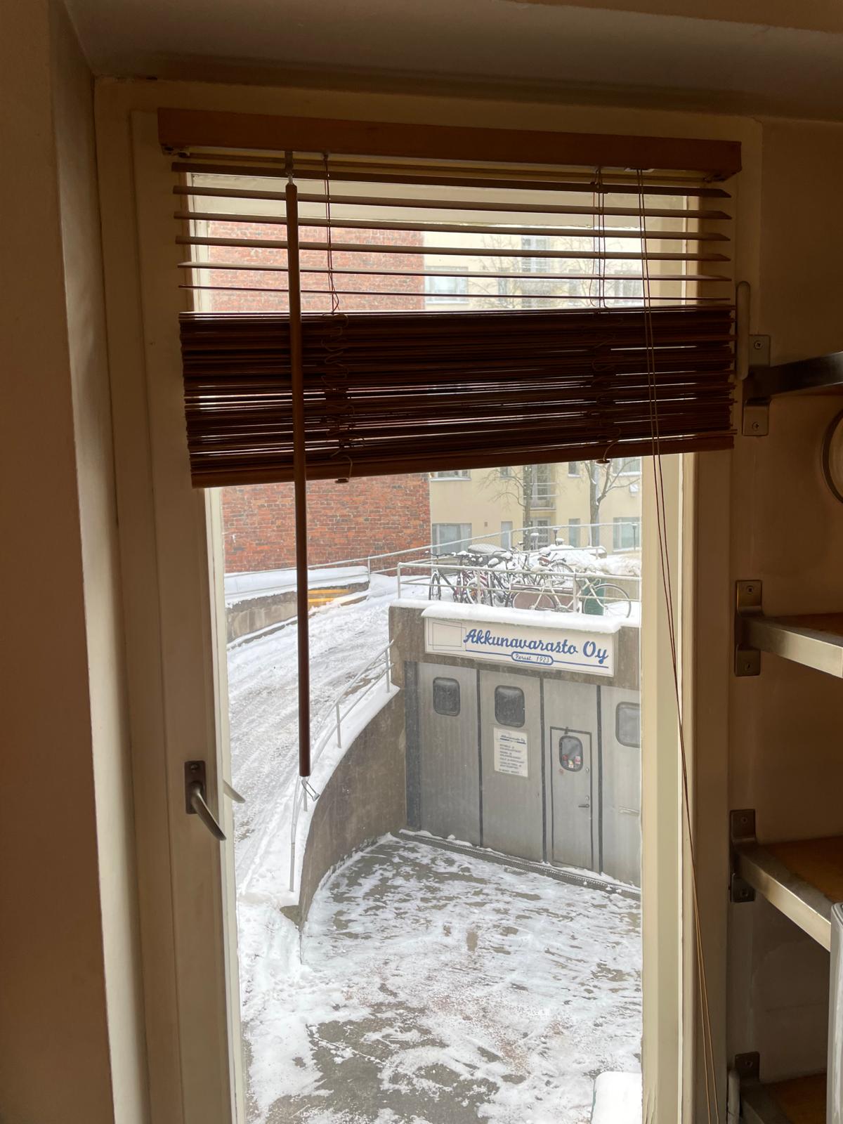 Merimiehenkatu 16. Pintamallin puukaihtimet vapautettiin tehtävästä ja tilalle uudet sälekaihtimet lasien väliin.